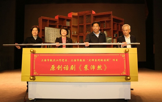 出席活动的领导嘉宾为《裘沛然》首演开启卷轴