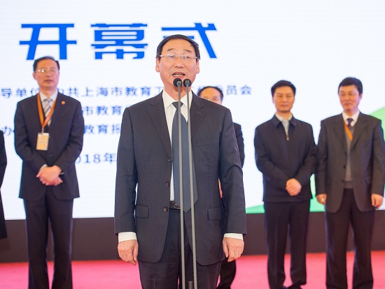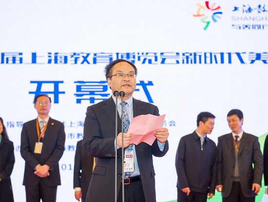 图为高德毅副书记宣布本次教育博览会开幕