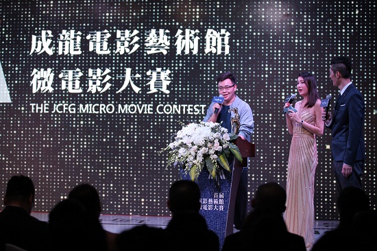 图为《我心底的美丽世界》导演刘子阳同学在成龙电影节上领奖