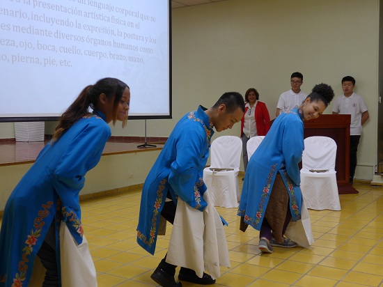 艺术团在多米尼加期间还为圣多明各理工大学的师生做了弘扬中国传统文化的“漫谈中国戏曲艺术”专题讲座,通俗易懂的讲座加上丰富多彩的艺术展示使得现场气氛十分活跃,尤其是在与观众互动的环节上,圣多明各理工大学的学生们对中国戏曲身段和民族乐器特别感兴趣,都跃跃欲试上台体验,该校校长古斯曼更是亲自参与戏曲打击乐器的演奏。精彩纷呈的讲座为当地的大学生们提供了一个了解和学习中国文化的窗口,也为艺术团的多米尼加之行划上了圆满的句号。