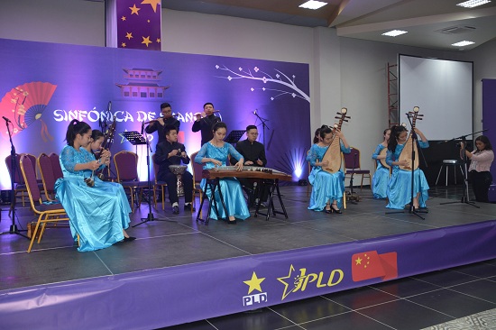 当地时间5月18日下午14点,飞机安全落地圣多明各机场,艺术团一行不顾时差与疲劳,刚下飞机就马不停蹄地赶往多米尼加执政党-解放党总部,为多米尼加各界人士带来了一场集昆曲、京剧、民乐重奏为一体的,具有浓郁中国传统特色的演出。解放党青年部书记罗德里格斯、解放党政治局委员希门内斯、出口与投资中心主任德莱昂、解放党党报总编卡萨哈拉、该党党员、总统府官员及各界友好人士观看了演出。第二天,艺术团又奔赴圣地亚哥文化中心进行了专场演出,圣地亚哥省省长多里比奥、众议院外委会主席苏亚雷斯、参议员瓦伦丁、多位众议员、中资企业代表、华侨华人及友好人士纷纷拨冗观摩。