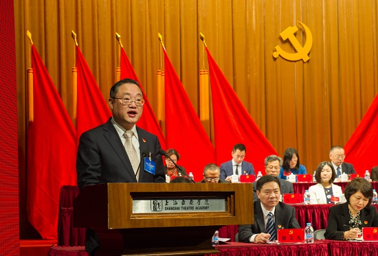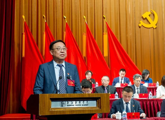 成旦红副书记代表上海市教卫工作党委对大会的召开表示热烈的祝贺,向各位代表和全校广大共产党员、师生员工表示诚挚的问候。对中共上海戏剧学院第七届委员会取得的成绩给予了充分肯定。他指出,上海戏剧学院自上次党代会召开以来,学校党委牢固树立“四个意识”,不断提高思想站位和政治站位,开拓奋进,锐意进取,开创了学校党的建设和改革发展各项事业的新局面,为服务国家和上海重大发展战略,为上海教育综合改革和国际文化大都市建设做出了积极的贡献。