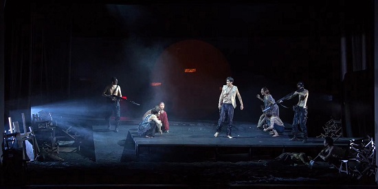 轰隆的雷声伴随着淅沥的雨声,观众们进入了这个蛮荒的生死场——莽莽黑土,阵阵硝烟,桩桩废木。何雁导演把如风暴般来临前的冷静和狂热带给了观众,整个演出深深地震撼了在场的每一位观众,让他们仿佛置身其中,也为之动容。(文:朱小小 校对:游溪 图:尹雪峰 编辑:榕树)