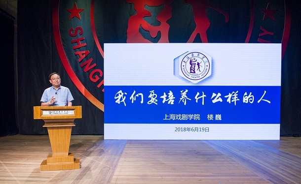 上海戏剧学院党委书记楼巍作首场授课 刘佳奇 摄