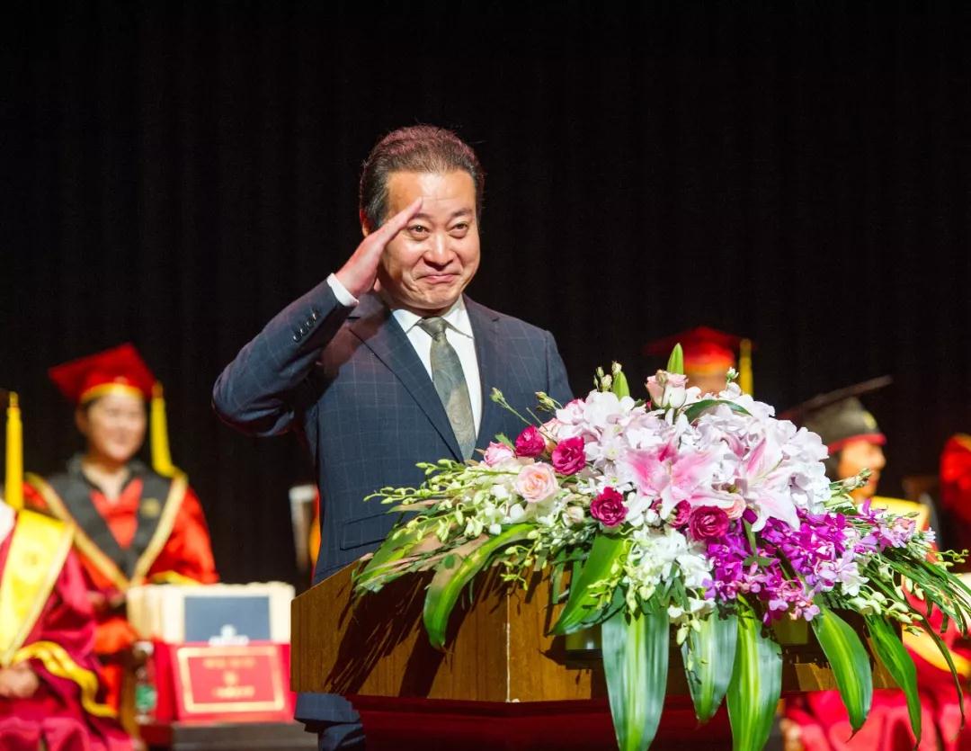毕业生家长代表许文广也发表了热情洋溢的感言。他感激学校对孩子的精心培养,帮助孩子开启人生的新里程。他说,看到自己的孩子在毕业大戏中驾轻就熟的精彩表演,没有什么比那一刻更让人激动、光荣和欣慰。他勉励在场的毕业生要把握青春时光,用知识、才华和优秀的作品开创新的生活,为学校争光、为母校添彩。