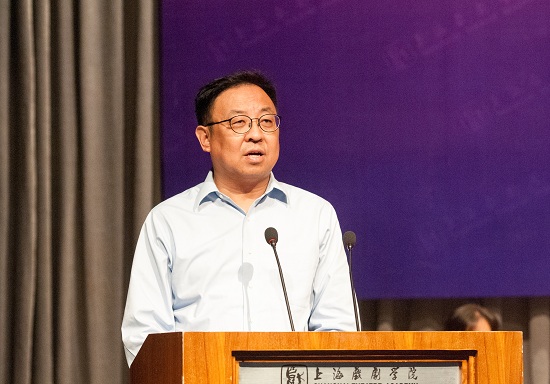 图为上海市教育工会副主席吉启华致辞
