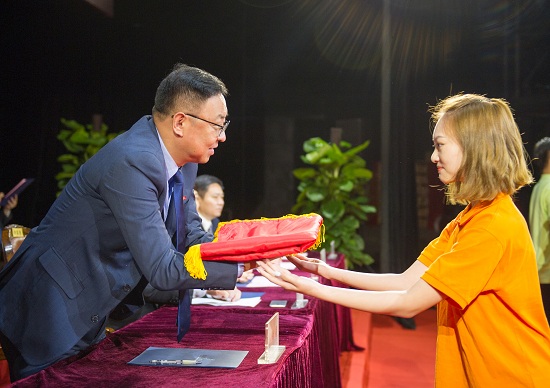 典礼最后进行了校旗传接仪式。在催人奋进的校歌声中,党委书记楼巍将校旗从老生代表手中传递给新生代表,2018级新生全体起立,面向校旗郑重宣誓,表达了上戏人的艺术品德和家国情怀。(文:国强 图:佳奇、郝思一 编辑:榕树)