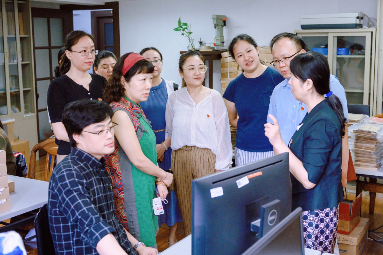 随后,在夏萍书记的带领下,上戏一行参观了上海艺术研究中心丰富的馆藏。在参观过程中,上戏教师对艺术研究中心与剧本创作中心的工作有了较全面的了解,在档案收藏、图书文物保管等工作上深受启发。