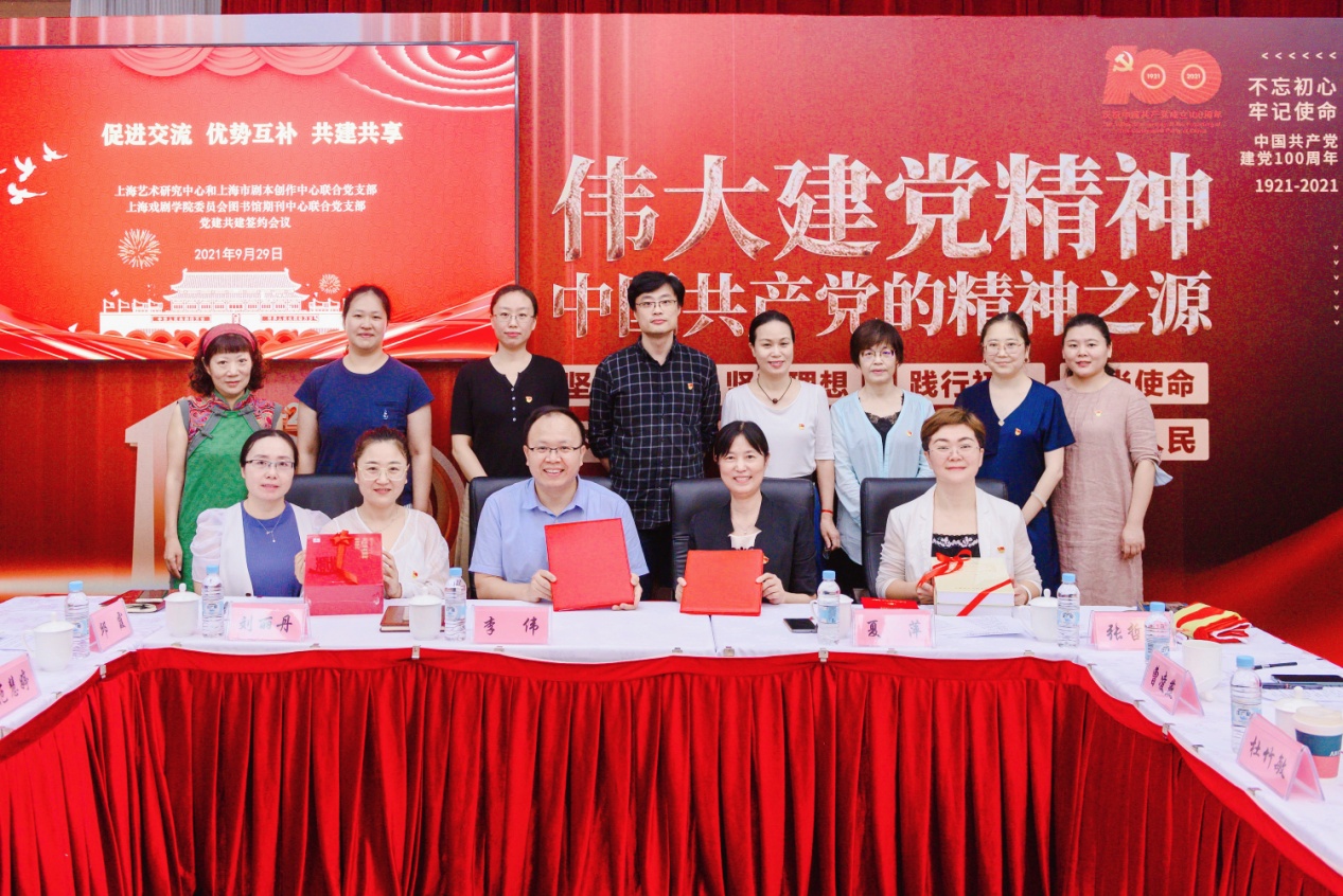 在建党百年之际,为深入学习贯彻习近平总书记关于党史学习教育系列重要论述,积极探索新形势下党建工作新模式,着力构建互带互动、优势互补、资源共享、共同发展的党建工作新格局,上海戏剧学院图书馆期刊中心联合党支部、上海艺术研究中心和上海市剧本创作中心联合党支部近日签订了《党建共建协议书》。
