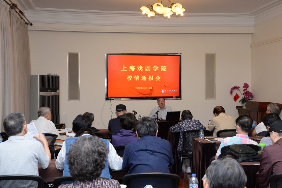 根据市委、市教委的工作要求,10月13日上午,我校在佛西楼二楼西会议室召开专题会议,由学校党委书记谢巍同志向离退休老同志作校情通报。会议由学校党委副书记胡敏同志主持,部分老领导、离休干部、离退休党总支委员、各支部委员、校老教协理事、校党风廉政督导、校教学督导、校教指委成员、校教学剧目评审组成员、校关工委与二级院系关工分会成员40人出席会议。