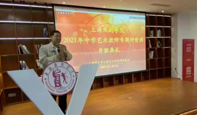 为充分发挥上海高校对本市基础教育教师专业发展的支撑作用,拓展教师的学科视野,提升教师的审美修养,培育教师的综合艺术能力,11月5日至7日,由上海市教育委员会主办,上海市师资培训中心和上海戏剧学院联合承办的“2021年大中小学艺术学科研修基地中学艺术教师专题研修班”在上海戏剧学院顺利举行,共有来自本市13个区的41名中学艺术教师参加培训。上海市师资培训中心党委副书记、副主任殷以杰出席开班仪式并致辞,上海戏剧学院教务处处长、研究生部主任沈亮教授出席开班仪式并致辞。上海戏剧学院张生泉教授主持开班仪式。