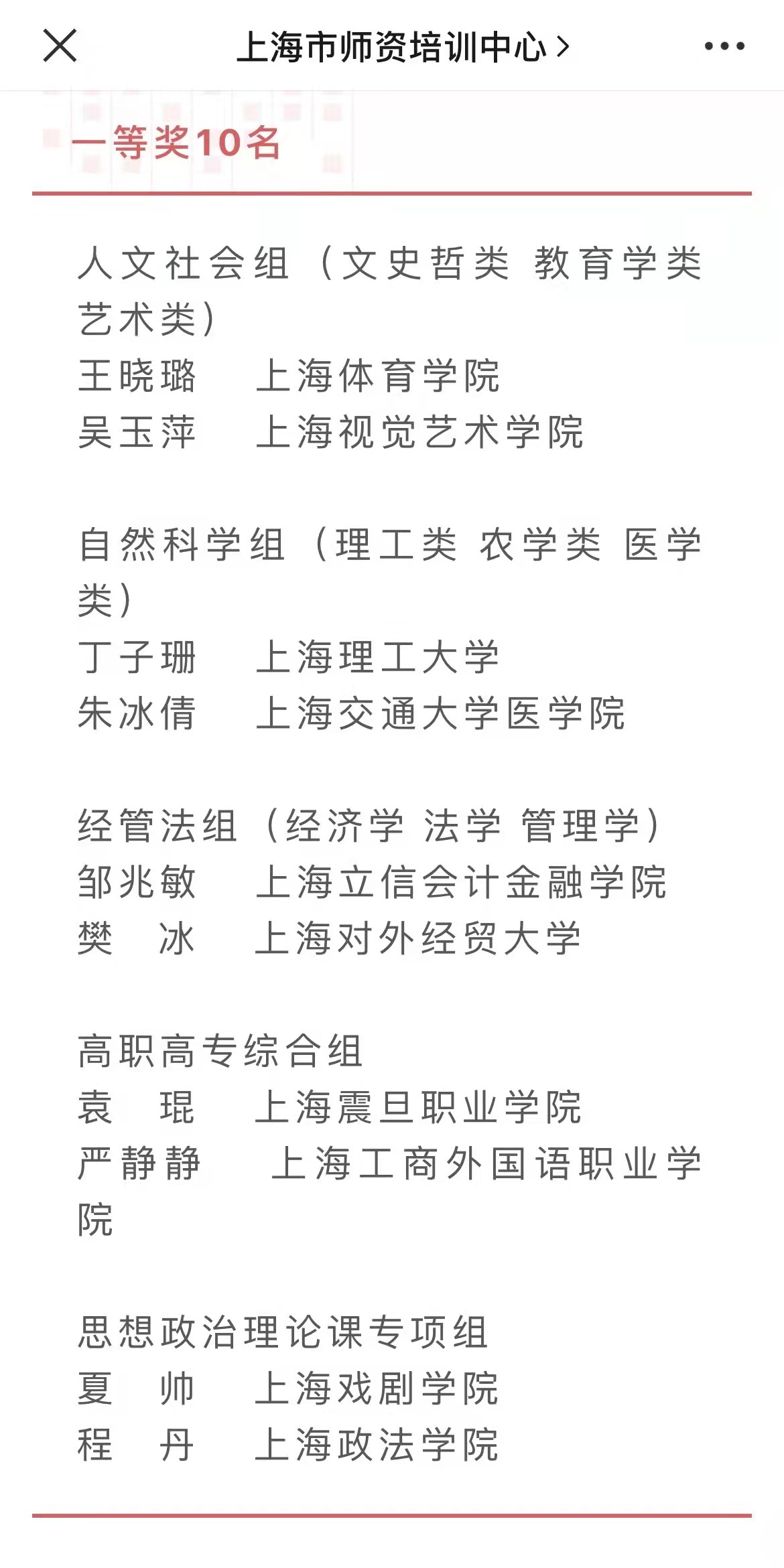 11月27日,导演系学生党支部书记、专职辅导员夏帅老师与31所市属高校的68位青年教师一起和课程思政专家“云”端相会,共同完成了第二届“上海高校青年教师培养资助计划”课程思政教学案例展演活动,最终获得思想政治理论课专项组一等奖的好成绩。