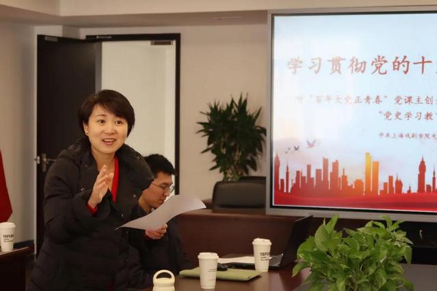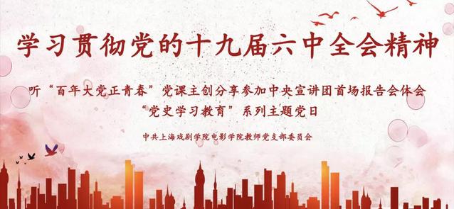 2021年12月30日,上海戏剧学院电影学院教师党支部在昌林路校区党建服务中心举行“党史学习教育”系列主题党日活动,本次活动主题为“学习贯彻党的十九届六中全会精神,听‘百年大党正青春’主创分享参加中央宣讲团首场报告会体会”。电影学院教师党支部邀请了上海广播电视台东方广播中心第四党支部的四位一线编辑、主持人来到昌林路校区为电影学院教师党员和学生支部支委作宣讲和分享。