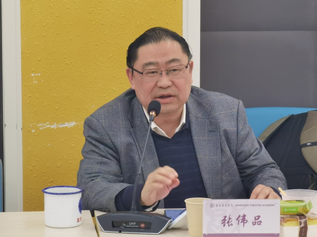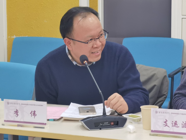 《戏剧艺术》副主编、上海戏剧学院图书馆馆长李伟教授对中心提出了自己的三点建议。首先中心创作的剧目,可以提前计划,与专业院团合作,做专业院团一系列艺术家剧目,如昆曲剧目。其次,他所从事现代戏曲的研究想法,从理论创新、科研攻坚、跨界融合等,都和中心的理念思路吻合,他目前正在进行的台湾戏曲跨界研究,一系列成果可以与中心共享。此外,他建议中心的科研项目要有一个长远系统的规划,李佩红院长和张军校长分别代表其年龄段京剧界和昆剧界最优秀的艺术家,除了演出方面有京昆合演,还可以做一系列长期项目。