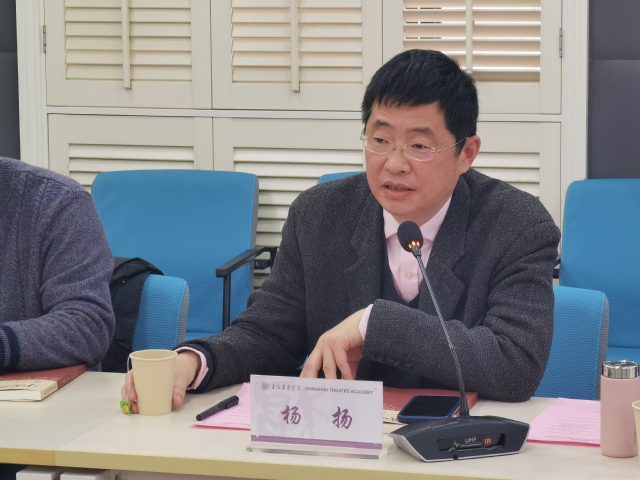 上海戏剧学院副院长杨扬教授代表学校对本次会议致辞,与专家们分享了中心从申报到获批成立的过程,从科研、人才培养、建设经费等多方面进一步强调了上戏对于上海市戏曲文化协同中心的重视,以及在“十四五”规划中新一轮学科布局上,上戏领导对戏曲学院工作的充分信任与支持,他强调中心建设对戏曲学院未来发展意义重大,具有平台价值和作用,希望党政班子团结一致,把这项工作做好;也希望资源共享,群策群力,发挥广大教师的积极性,创作出更多更好的剧目,培养更多的优秀戏剧人才。