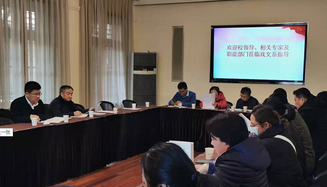 陈军从教学、科研、艺术创作及人事、制度等几个方面,向学院及职能部门领导汇报了戏剧文学系2019—2021年度的行政工作,同时就存在的问题进行了分析。