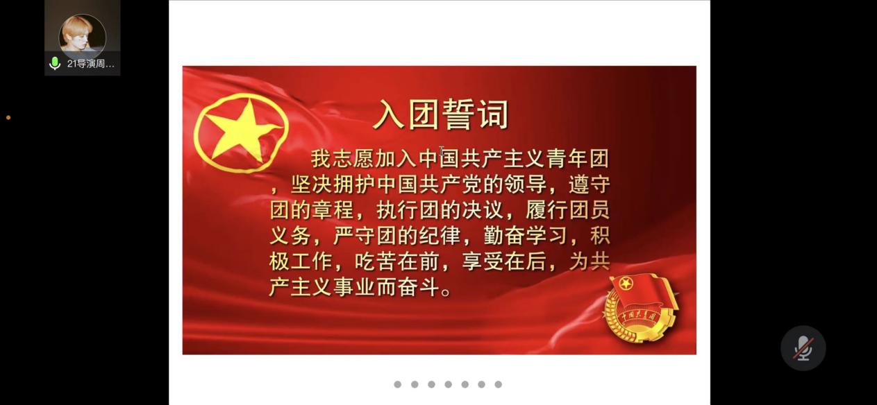 紧接着在夏帅老师的主持下,同学们进入到了重温入团宣誓誓言的环节。大家打开摄像头,每个同学耀眼的红色背景构成了振奋人心的画面,这一抹抹红色是中国的颜色,青年热血的颜色!“我志愿加入中国共产主义青年团……”宣誓时,每一个人的眼睛里都充满了身为共产主义接班人的希望和光芒。
