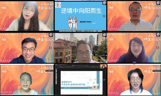 随后的师生交流会分成“理性思考,做积极的行动者”、“自我调适,做自律的学习者”、“同向而行,做防控的助力者”三个主题部分,多位师生代表做了问题回应和经验分享。