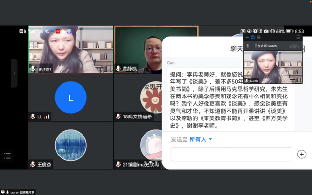 读书会上,每位老师引导学生从成书情况、主要内容、研究方法、学术价值等方面去了解一部经典,告诉他们如何汲取前辈学者的优秀治学经验并运用到自己的学习和研究中。同学们在老师读书经历的启发下对日后的学习有了更多的想法。他们在读书会中踊跃发言、积极提问、表达感悟。虽为线上,但气氛热烈、效果明显。与此同时,老师们重读经典,也获取了很多新的学术灵感。
