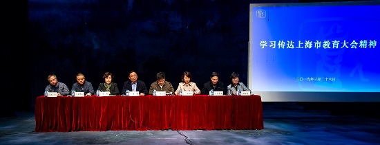 上海市教育大会在3月22日举行,市委书记李强、教育部部长陈宝生、市委副书记、市长应勇、市委副书记尹弘等在会上发表重要讲话。3月26日中午12:30,我校在端钧剧场召开专题会议,传达贯彻上海市教育大会精神,深入学习贯彻全国教育大会精神及习近平总书记在思政教师座谈会上的讲话精神。会议由党委书记楼巍主持,党委副书记、院长黄昌勇传达了会议精神,学校党政领导、全体中层干部、各支部书记及支部委员、教师代表参加了会议。
