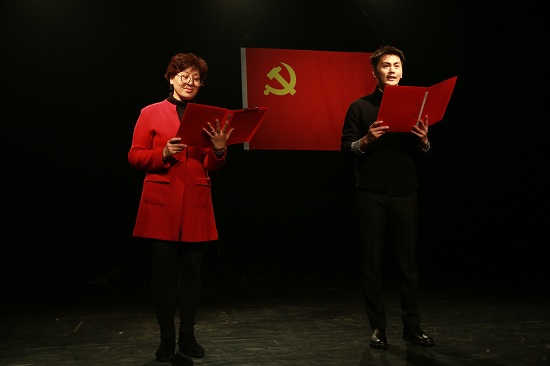 表演系党支部余笛老师的独唱《不忘初心》拉开朗诵会的序幕,将党员同志们的思绪带入到改革开放的情境中,回顾实行改革开放这一伟大政策的初衷。主题朗诵,人人参与,“开放高地”“乡村变迁”“经济改革”“生态文明”等代表着改革开放伟大举措的十大篇章在党员朗诵者声情并茂的演绎下,让全场党员深刻感受到改革开放四十多年来,国风民情的巨大改善提升。随后的交流环节中,老师和学生代表结合自身经历,用生活故事、留学生涯、家庭成长等事迹向大家真切地传达出他们对改革开放政策的感激之情。在领导点评环节中,校党委副书记胡敏对此次表演系党支部的主题党日活动给予了肯定,她总结说:本次活动主题鲜明、仪式感强、设计精心、全员参与,具有表演系专业特色。每位发言的党员都能结合切身感受,从改革开放的背景回归到教师和学生的本职,此次活动具有现实意义,是一次别开生面的组织生活,胡敏副书记还给表演系党支部工作提出了希望和建议。最后,在党旗前,全体党员合影留念。本次表演系党支部主题党日活动圆满结束。