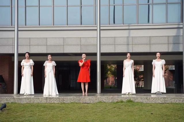电影学院李姣老师带领四位同学深情演唱了歌曲《五星红旗》,五星红旗是我们心中最美的旗帜,永远给予中华民族前行的磅礴动力。