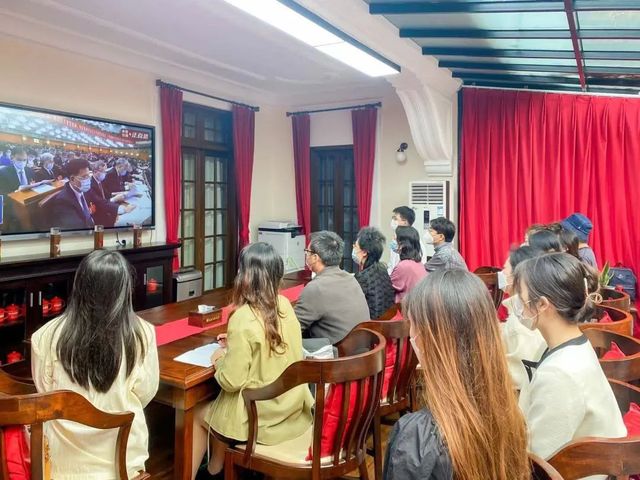 10月16日,上海戏剧学院师生在各校区收看了中国共产党第二十次全国代表大会开幕会直播。