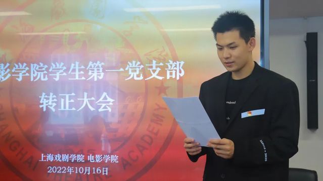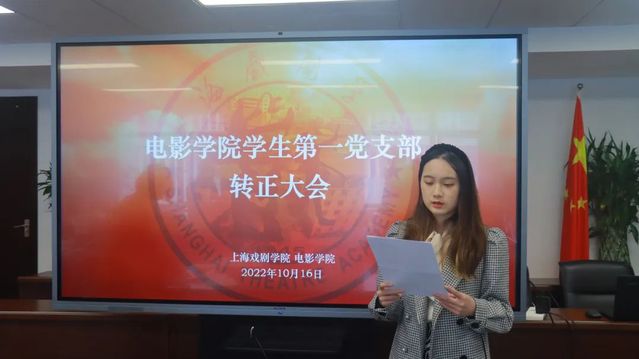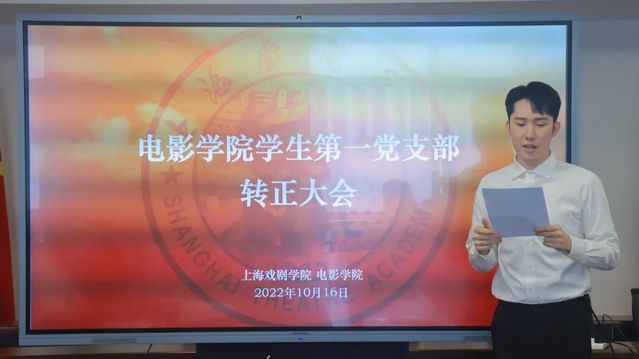 2022年10月16日,恰逢中国共产党第二十次全国代表大会在京召开之际,上海戏剧学院电影学院学生第一党支部、学生第二党支部预备党员转正大会在1号楼北楼604顺利召开。