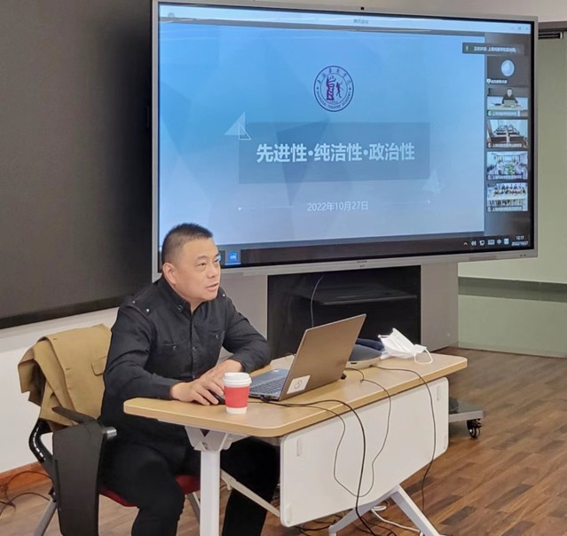 当天下午安排的第二讲和第三讲党课分别为继续教育学院党支部书记黄暾炜老师讲授的《中华美学精神铸牢中华民族共同体意识》和学校党史学习教育师生宣讲团成员、创意学院的包立峰老师讲授党的二十大精神专题讲座《中国式现代化,全面推进中华民族伟大复兴!》。