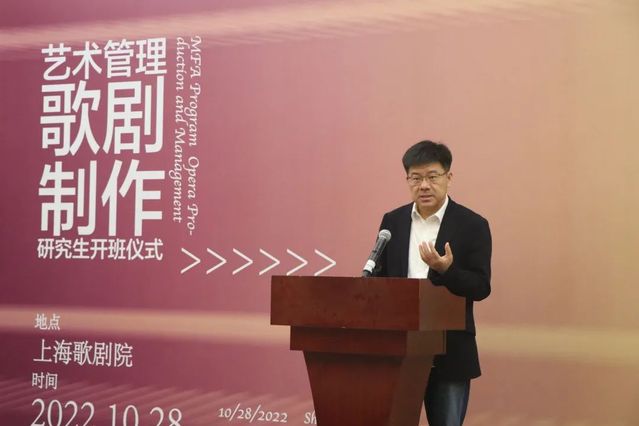 上海戏剧学院院长黄昌勇在开班式的致辞中,介绍了该项目的缘起及基本情况。他表示,歌剧制作研究生项目的开设将主要为上海大歌剧院储备人才,而这个剧院将是国内乃至亚洲第一个以歌剧艺术生产为主要功能的世界级文化地标,其建成和运营具有标志性意义。学校将尽可能为歌剧制作人的培养搭建平台,提供国内国际优质资源。他还对该班学生的学业发展规划提出建议,鼓励大家敢想敢为、善作善成,努力实现奋斗目标。