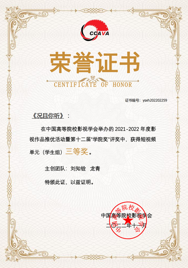 2022年11月19日晚,中国高校影视学会2021-2022年度学术成果、影视作品推优活动暨第十五届“学会奖”、第十二届“学院奖”颁奖仪式以线上线下相结合的方式举行,我校师生在学术和创作领域均斩获佳绩。