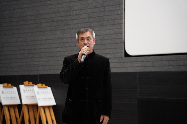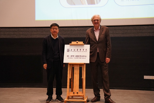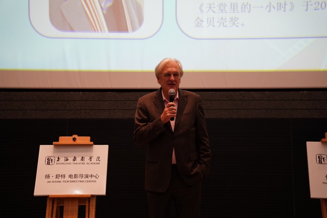 杨·舒特教授是上海戏剧学院电影学院教授,哈佛大学原教授、美国电影学院原校长。杨·舒特电影导演中心,成员有三人,包括两位电影学院青年教师,将共同开展电影导演教研、创作活动。黄昌勇院长和杨·舒特教授上台,就杨·舒特电影导演中心成立仪式合影留念。杨·舒特教授发表了致辞。