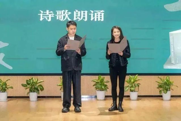 戏文系教师秦子然和研究生朱津青,共同朗诵了陈耘先生的诗歌作品《用青春的心,敲打生活的门》。该诗作原刊载于1956年4月13日的上海戏剧学院院报,此次也被收入了《戏文名师》一书。