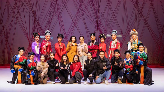 在指导老师吴汶聪的带领与指导下,上戏2019级戏曲导演班学生们,有幸获得了与上海宝山沪剧艺术传承中心联合创作的机会,走入宝山沪剧团,与成熟、专业的演员联合创排。运用沪剧尝试新鲜的表现手段。青年导演们与专业的沪剧团演员们相互磨合,“表导相长”学生导演的构思在演员身上得以呈现,演员的表演思路在青年人的激发下得以打开;在排练期间,紧抓“创新”“现代”等元素,运用现代的喜剧思维来重新编排与演绎经典传统剧本。吸收了其他剧种以及话剧、舞蹈等多种艺术形式的养分,相互融合,使学生导演对导演技法有了更加具体形象的掌握。也帮助演员丰富人物角色内心,并尝试突破原有的戏曲表演样式,使得所有角色在舞台上更加鲜活生动。紧贴当下审美点与审美节奏,创新演绎经典。