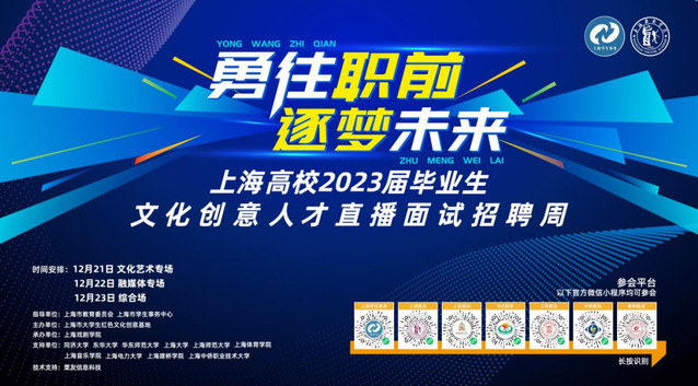2022年12月21日-23日,在上海市教委指导下,2023届上海高校毕业生文化创意人才直播面试招聘周于云端成功举行。