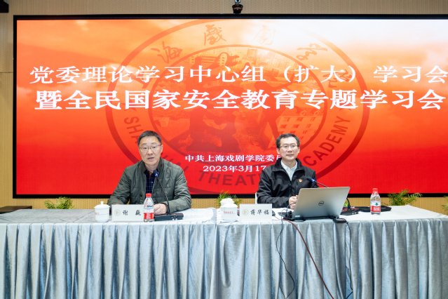 3月17日下午,上海戏剧学院党委理论中心组(扩大学习)会暨全民国家安全教育专题学习会在华山路校区召开。会议由校党委书记谢巍主持,全体校领导、全体党政中层干部参会。