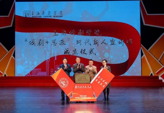 今年年初,上海戏剧学院“戏剧+思政”文化育人模式成功入选“2023年度高校思想政治工作精品项目”。为进一步推进“戏剧+思政”文化育人模式,深化落实“时代新人铸魂工程”,努力实现思政可感知、可体验、可化人、可获得,上海戏剧学院“戏剧+思政”时代新人宣讲团正式宣告成立,与会校领导共同见证,张伟令主持宣讲团成立仪式。