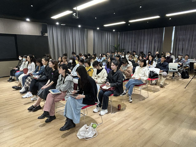 在互动环节中,师生们踊跃提问,牟森教授以道寓于术,纵横开合,援引奥尼尔、斯丛狄、德拉克洛瓦、籍里柯等名家的理论与作品,结合切身的创作体会,以及与中国当代著名文学家合作的成功经验,就舞台换景、内心独白处理、小说改编戏剧等具体问题,一一展开解答。他独到而精辟的艺术见解、广博而精微的艺术境界、高超的艺术创造能力以及执着不懈的艺术追求,都给在座的听众留下了非常深刻的印象。讲座结束,听众意犹未尽,仍聚集在牟森教授周围,开展着热烈的讨论。