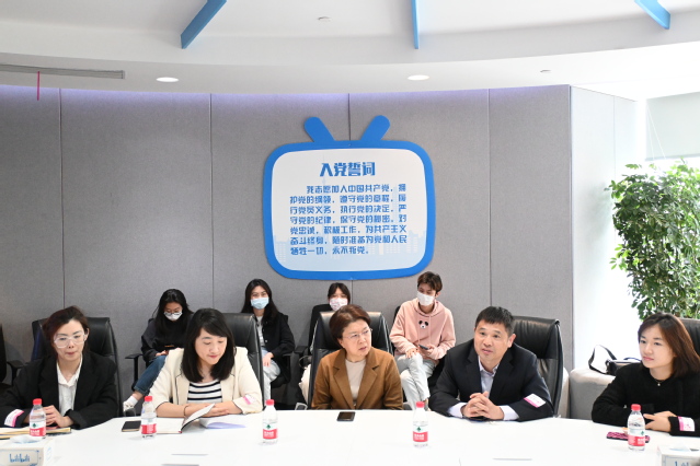 在哔哩哔哩党委办副主任徐逸凡的接待下,师生共同参观了哔哩哔哩三楼的公共空间和党群服务站,感受哔哩哔哩的企业文化。作为一家年轻、开放、有活力的企业,B站注重员工的工作和生活平衡,为员工提供人性化的服务。作为最受年轻人欢迎的互联网公司之一,其党建工作融入了诸多崭新元素,专利墙的个性化设计、以动漫人物传播榜样力量等形式别致新颖,给年轻人以亲切之感。