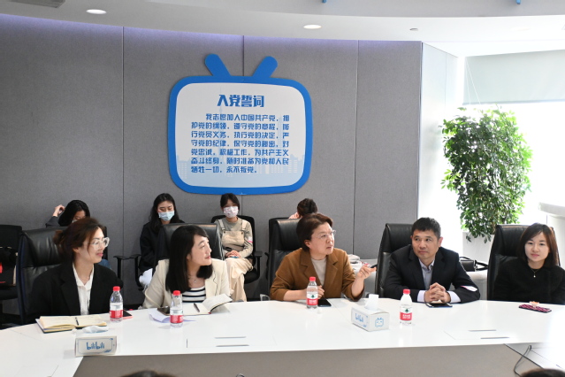 随后,双方在会议室进行了座谈交流。首先由哔哩哔哩公共事务经理何朗朗为大家介绍公司概况,B站目前是中国最大的弹幕视频网站,也是一家以年轻用户为主要受众的全媒体平台,成为了年轻人高度聚集的综合性视频社区。经过多年的发展,围绕用户、创作者和内容,构建了一个源源不断产生优质内容的生态系统,现已涵盖7000多个兴趣圈层。坚持数据真实、坚持内容品质导向、坚持在社区内部推行正向价值观,在“三个坚持”下,公司不断发展,凝聚优质创作者,营造和谐的社区氛围。