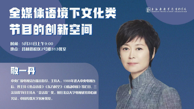 5月31日上午,中央广播电视总台播音指导、主持人敬一丹老师莅临上海戏剧学院昌林路校区,以“全媒体语境下文化类节目的创新空间”为题开展了一场精彩纷呈的讲座。上戏驻校艺术家蒋昌建老师特地前来支持。上戏电影学院副院长董健、电影学院播音主持系主任费泳、电影学院研究生部办公室主任包磊、上电影学院播音指导王琦老师、上戏附中肖英校长和上戏播音主持专业的师生们纷纷到场认真聆听了讲座,上海电台新闻中心副主任张明霞老师、上海电台首席播音员路平老师和上戏其他院系的学生、毕业生等亦慕名前来,现场座无虚席。敬一丹老师为上戏师生们五月份的学习生涯画下了圆满的句号。
