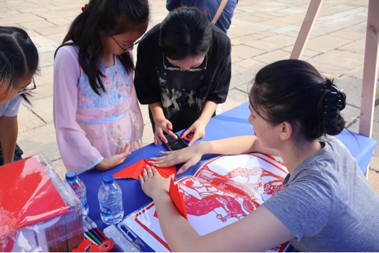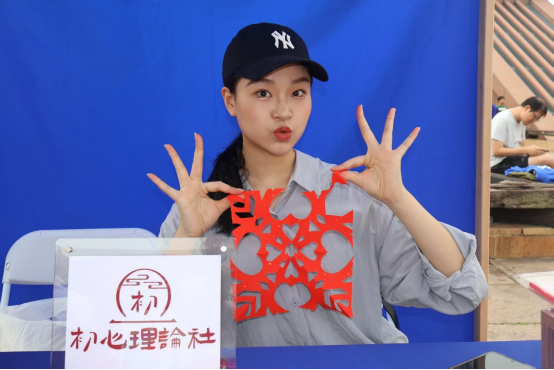 本次活动中,余诗洁、杨常婧、袁瑜泽、章绚、郑永灿等初心理论社社员带来的是国家级非物质文化遗产——中国剪纸,她们别具匠心地将红色文化元素融入到剪纸艺术,以青春创意助力红色基因传承。这些富含红色文化元素的剪纸作品,吸引了广大师生和市民游客驻足观看,几位社员还现场教授剪纸技艺,充分展现了我校艺术专业学生的风采,得到了广泛关注和认可。