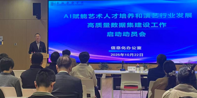 10月22日下午,上海戏剧学院在华山路校区智慧教室召开《AI赋能艺术人才培养和演艺行业发展高质量数据集》建设工作启动动员会。上海戏剧学院党委书记谢巍出席会议并讲话,各职能部门、二级院系高质量数据集建设专班负责人及具体工作落实人参加会议。会议由学校党委常委、副院长郭恺主持。