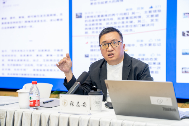会议特邀复旦大学新闻学院教授、传播与国家治理研究中心主任张志安作题为“舆情洞察、处置与发布沟通”的专题辅导报告。张教授结合多年舆情研究与实战经验,从专业性、复杂性与超越性三个维度,深入剖析了高校舆情处置的核心逻辑与传播策略。他指出,舆情工作不仅是技术问题,更是治理能力的体现,高校应在坚守专业精神的基础上,增强风险意识,提升沟通艺术,做到“问题要解决、态度要诚恳、沟通要充分”。