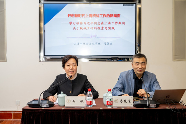 2025年10月24日下午,新时代党的统一战线工作专题培训于佛西楼二楼西会议室举行。上海市社会主义学院副院长马俊生受邀就学习领悟习近平同志在上海工作期间关于统战工作的探索与实践作专题报告,培训由中共上海戏剧学院党委副书记胡敏主持。