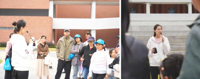 来自团总支学生会的“聚光青年”志愿者彭语馨和石韵涵带领着大家沿着精心设计的路线游览,感受校园的无限魅力。