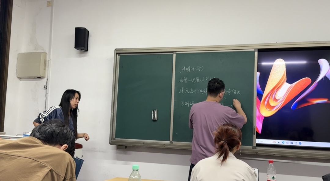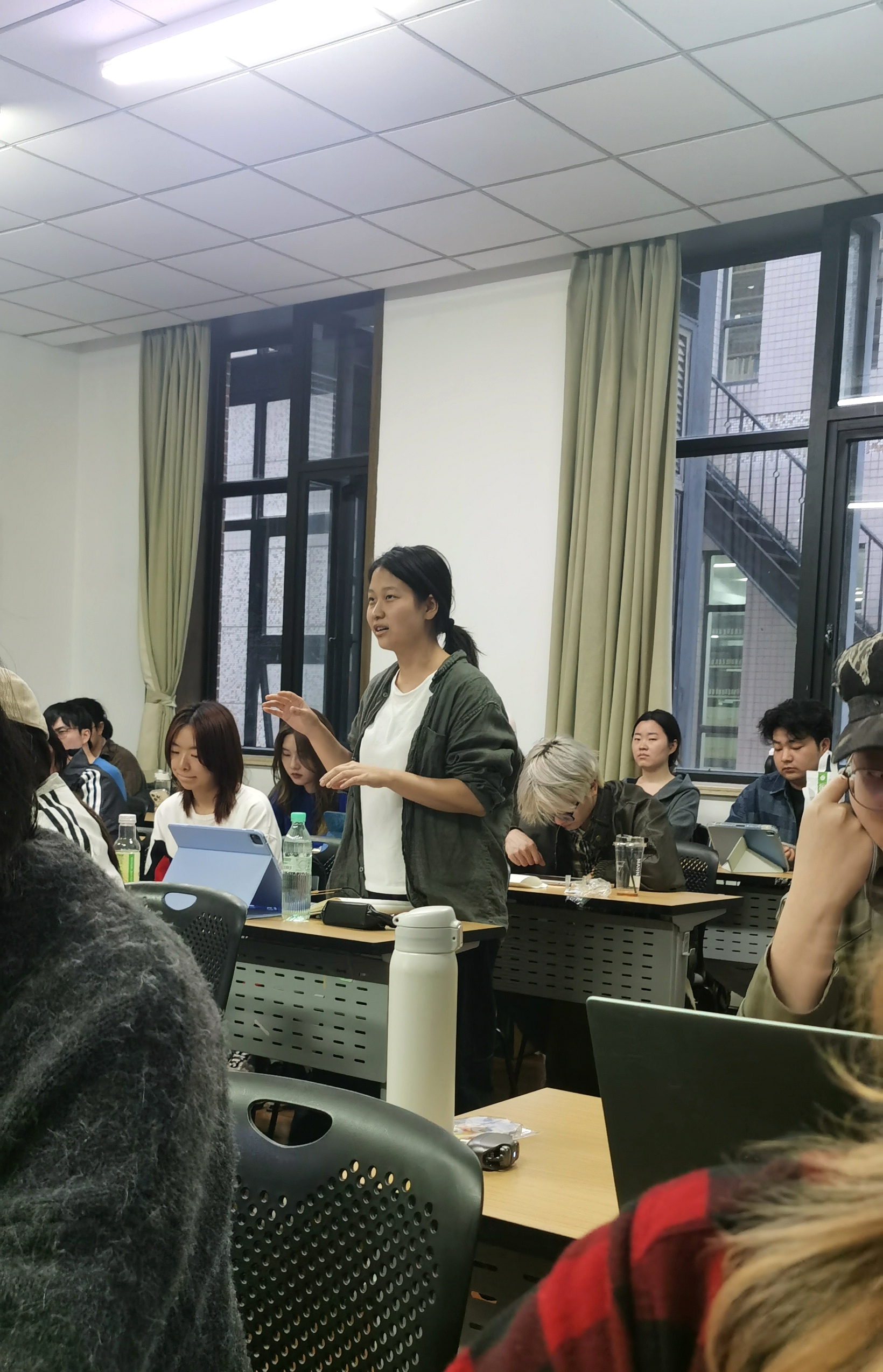 10月23日的课程中,程宇月博士从四个核心维度对剧本创作提出具体要求:一是内容层面,作品能否找到与当代观众生命经验产生共鸣的“文化内核”;二是主题把握,故事内容是否紧扣展区主题并尊重历史真实;三是空间适配,剧情场景是否贴合对应展区的实际空间布局;四是呈现效果,剧作形式是否符合博物馆观众的接受习惯和观演需求。针对已有完整框架的剧本,她组织学生进行文本细读,通过集体讨论指出问题所在,引导大家共同探讨解决方案;对于创作遇到困难的小组,则逐步引导,与学生一起头脑风暴,帮助他们理清思路,找到更具表现力的叙事切入点。