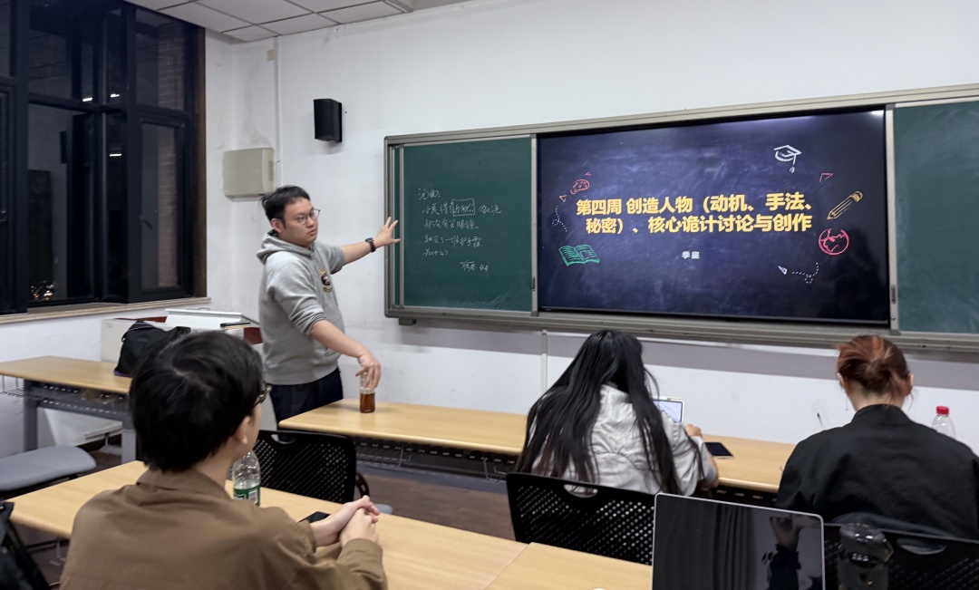 陶倩妮老师与季鋆博士带领的“剧本杀编剧工作坊”扎实推进,正逐步实现从理论认知向实践创作的有效转化。课程以“学生集体创作一部完整的五人剧本杀作品”为教学目标,系统开展剧本杀编剧思维训练与团队协作实践,充分激发学生的创作潜能。