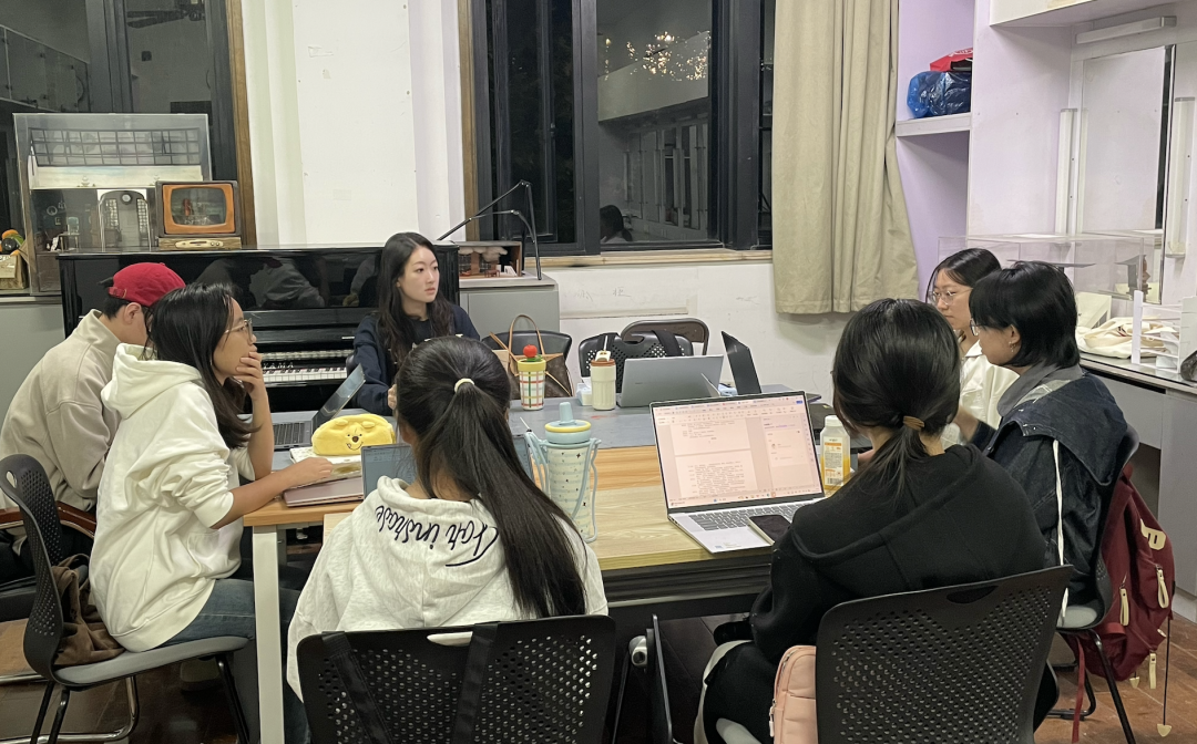 程宇月博士带领的“博物馆戏剧编剧工作坊”在完成前期实地调研与大纲讨论后进入创作实践阶段,学生们分为两组聚焦细节打磨,逐步形成完整的博物馆戏剧剧本。目前已与上海电影博物馆形成初步合作协议,为学生的实践创作提供可靠平台。