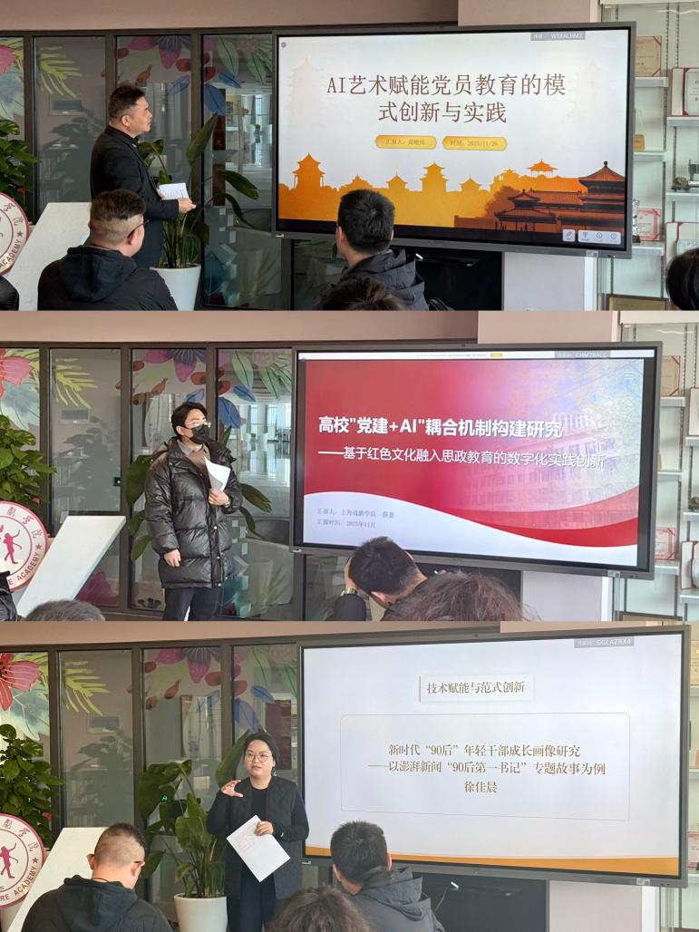 聚焦“文化传承与价值传播”,马天元以习近平文化思想为指导,探索新时代高校廉洁文化建设范式创新,思考如何突破浅表化困境;石俊结合艺术院校专业特色,分享基层党组织在统战与社团工作中的创新拓展;石昊则从历史视角出发,探讨还原历史舞台、开发文创、引入AI活化校史等党建引领推动戏剧影视美术设计发展的实践路径。